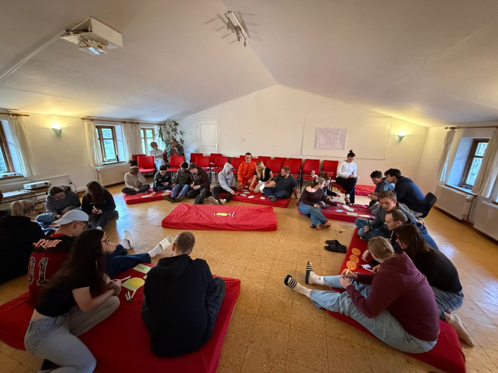 Aus welcher Perspektive betrachten wir die Welt? Diese Frage hat uns bei dem Weltverteilungsspiel beschäftigt und uns wurde in einer Gruppenübung klar, dass es gar nicht so einfach ist, die Welt aus einer nicht eurozentrischen Perspektive zu betrachten. Wir haben uns dann mit Nachhaltigkeit und Ressourcenverbrauch beschäftigt. Dazu haben wir das Weltverteilungsspiel gespielt bei dem wir u.a. erfahren haben, wie die Ressourcen, die Bevölkerung aber auch Umweltverschmutzung ungleich zwischen den Kontinenten der Welt verteilt sind. Dieses Spiel diente dazu eine neue Perspektive auf globale Herausforderungen zu bekommen.